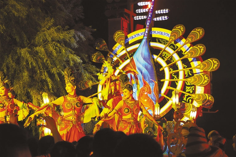 穿行故城,移步换景,仿佛穿越时空置身丝路古镇,让人沉浸式感知千年丝路的神奇魅力。和田职业技术学院教师刘馨仪带着学生前来研学,她说:“每次观看都觉得很震撼。演出让学生们直观、深刻地感受到丝绸之路的繁荣贸易和多元文化交融。”