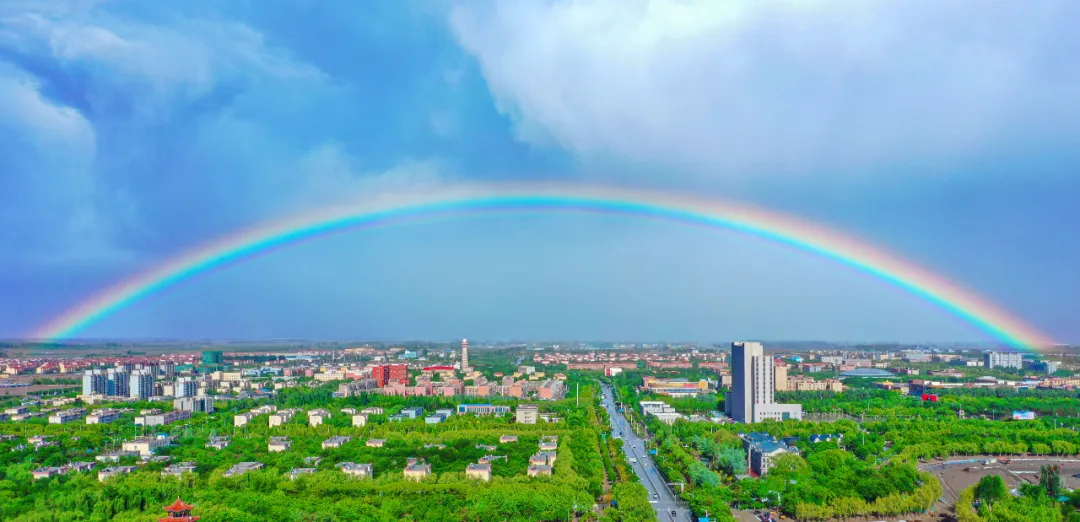 彩虹下的图木舒克市。第三师融媒体中心供图